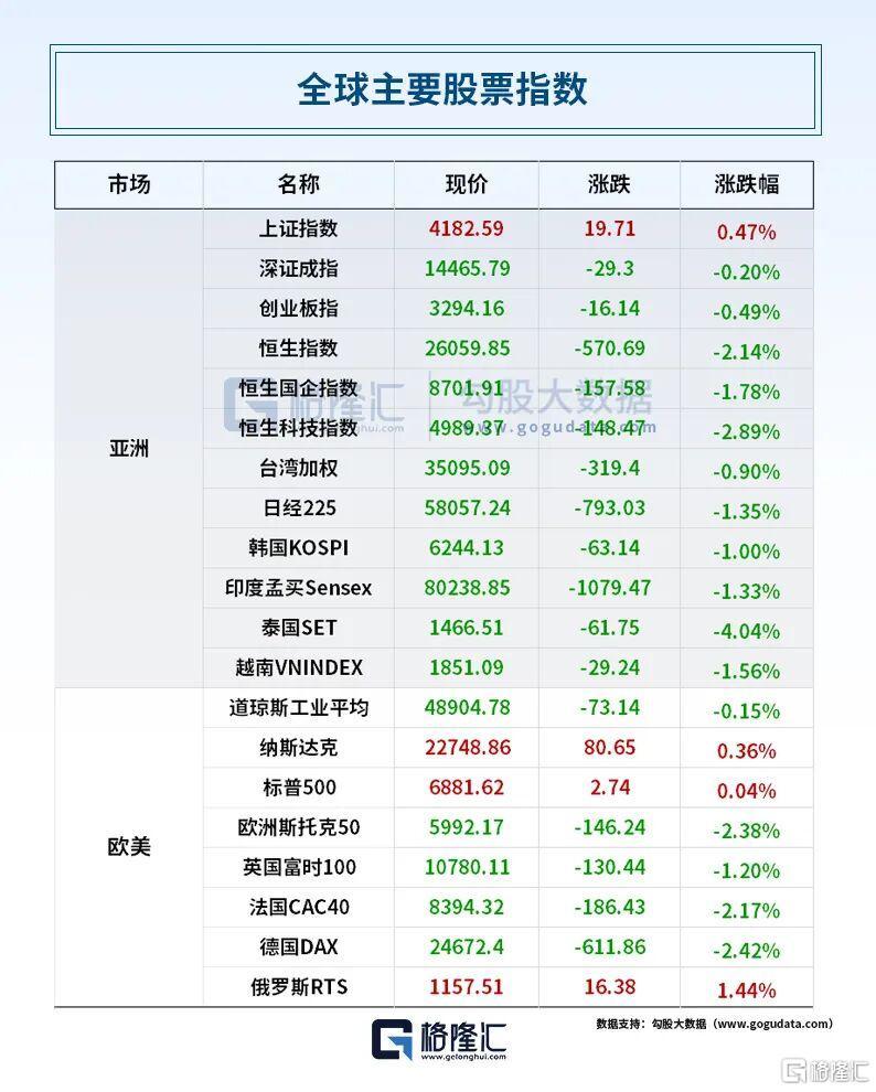 昨日A股方面,沪指涨0.47%报4182点,深证成指跌0.2%,创业板指跌0.49%;全市场成交额3.05万亿元。油气设备股飙升,“三桶油”历史首次集体收涨停;贵金属、军工、航天电子板块走强,小金属、煤炭、航运及民爆概念等涨幅居前。航空股下挫,AI应用股集体走弱。